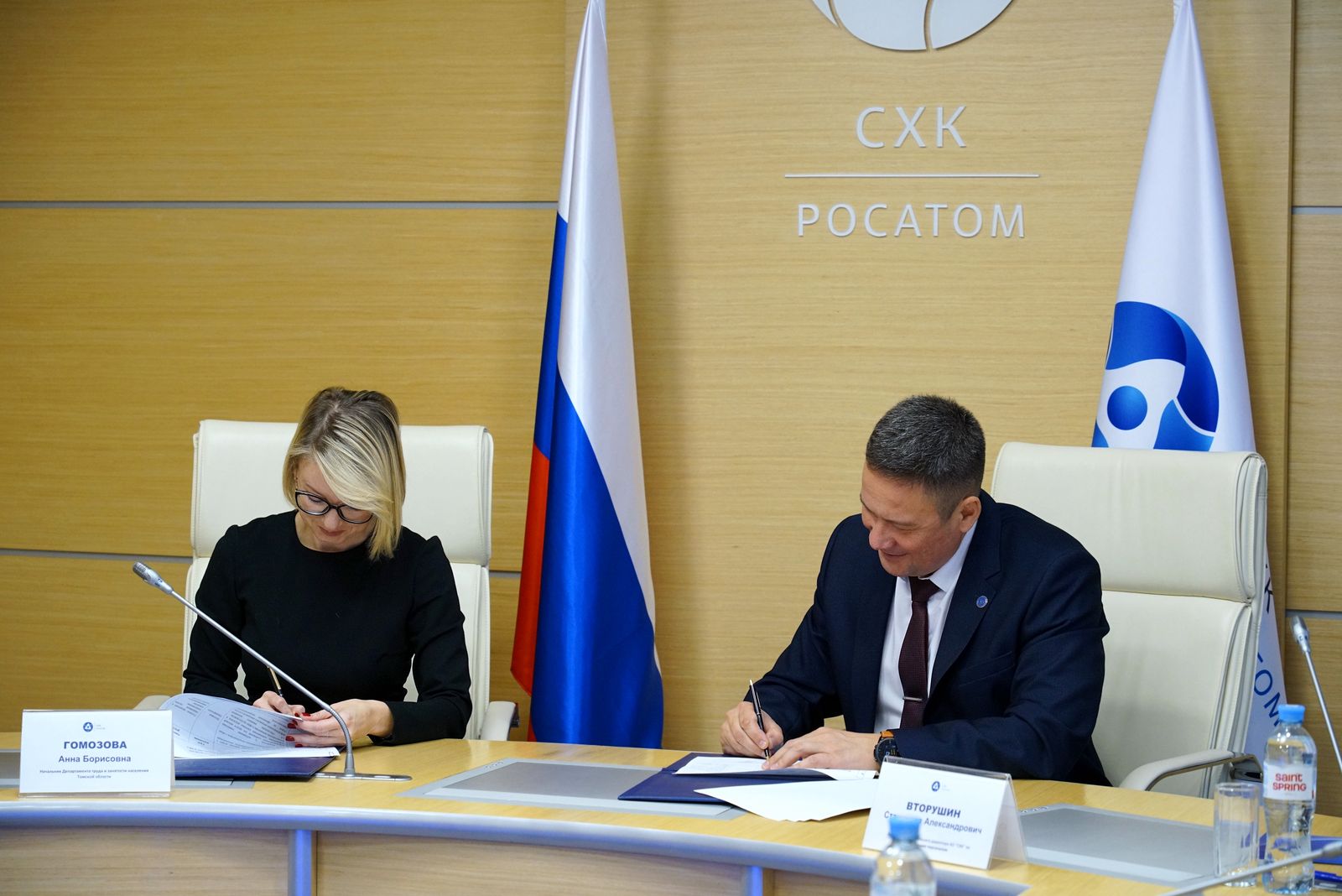 На Сибирском химическом комбинате (АО «СХК», предприятие Топливного дивизиона «Росатома» в г. Северске Томской области) состоялась рабочая встреча с руководством департамента труда и занятости населения Томской области. По ее итогам заместитель генерального директора по управлению персоналом АО «СХК» Станислав Вторушин и начальник департамента труда и занятости населения Томской области Анна Гомозова подписали дорожную карту, определяющую план совместных мероприятий по привлечению и подготовке персонала для предприятия.